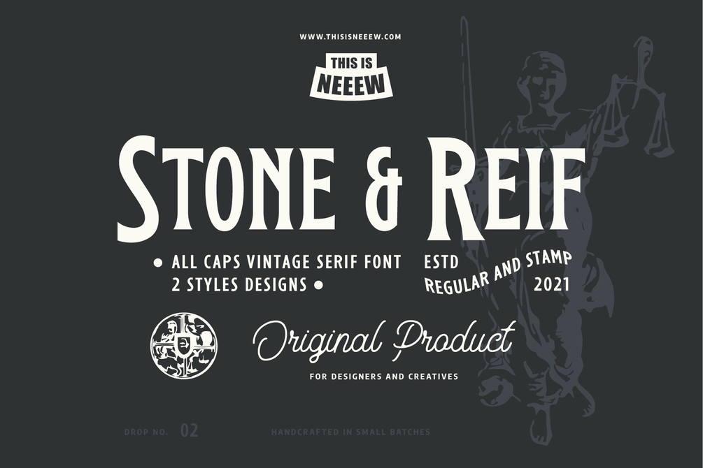 I am super happy to introduce Stone and Reif a serif retro-inspired font that comes in two distinct styles: 'Regular' and 'Stamp.'